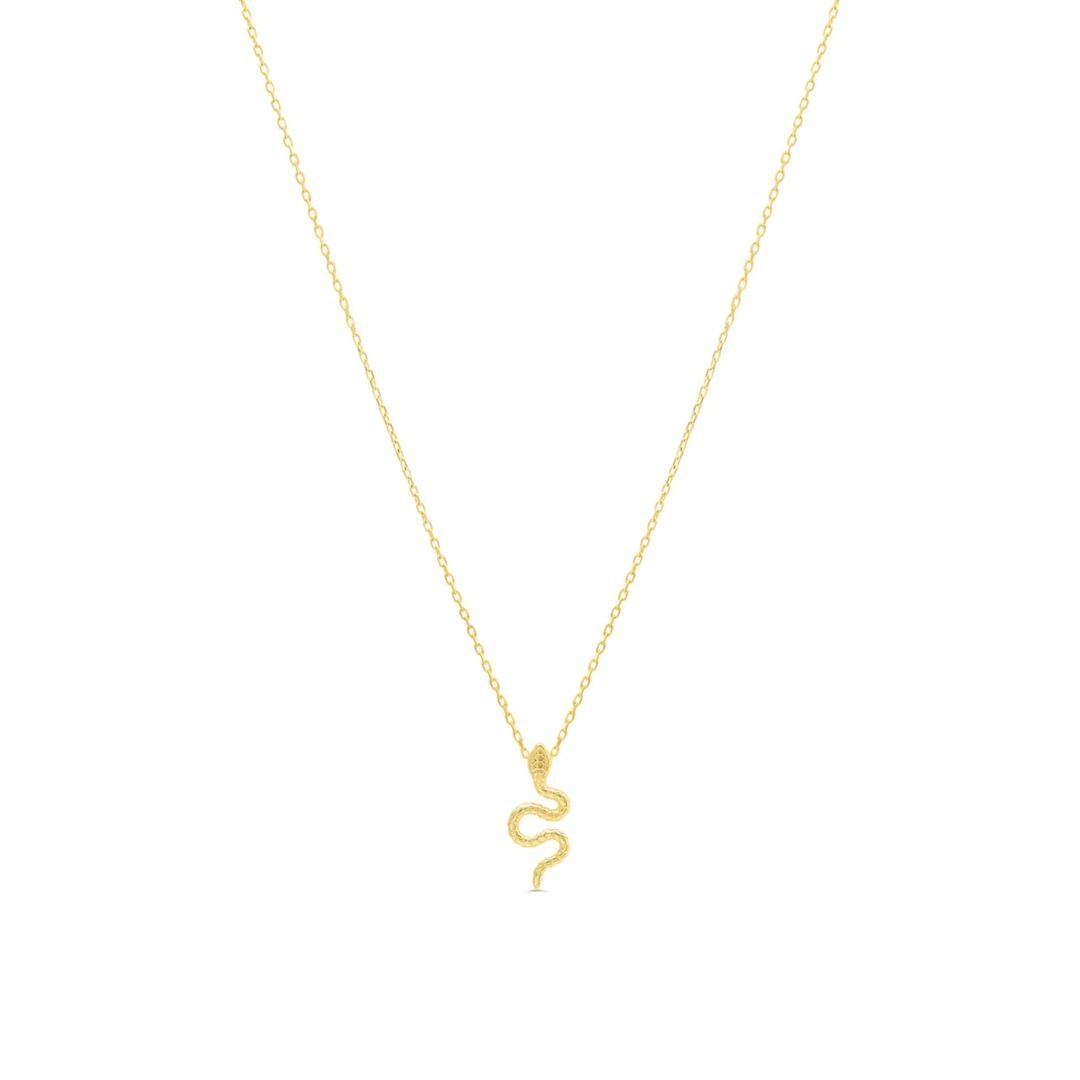 Symbolizing transformation and renewal, this gold snake necklace features a snake design coiling gracefully on a gold chain. Its textured scales catch the light, symbolizing the shedding of old layers and embracing new beginnings. Perfect for those who are experiencing change, this necklace serves as a powerful reminder that each day holds potential.