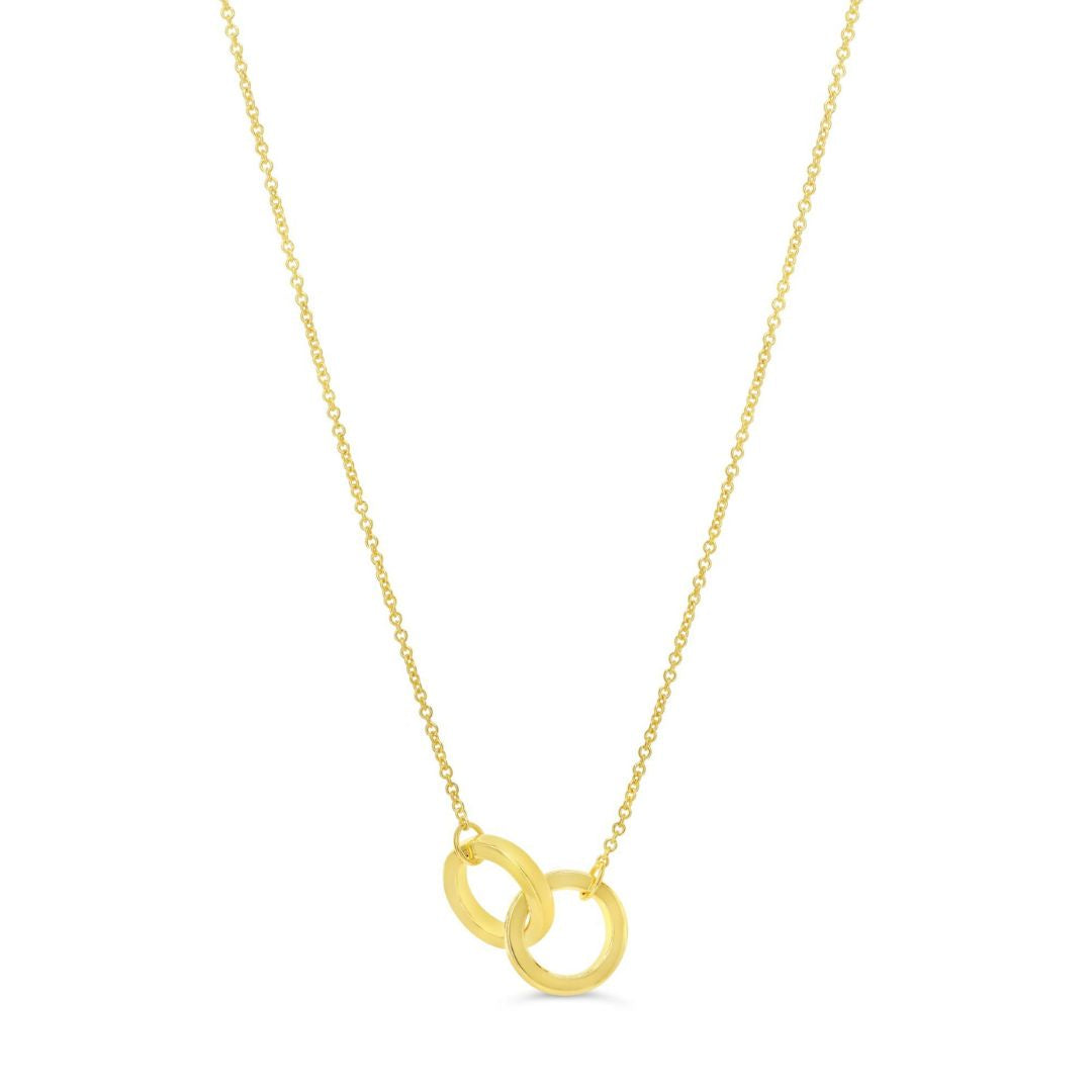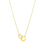 This gold necklae is a symbol of an unbreakable bond, featuring two interlocking circles, representing the enduring connection between two people. Its simplistic yet profound design makes it a versatile accessory, perfect for both casual and formal occasions. A meaningful gift or a cherished personal keepsake, this necklace is a testament to lasting relationships and timeless style.