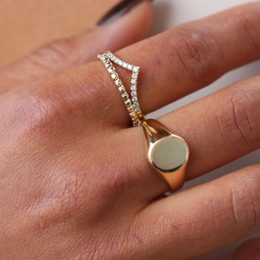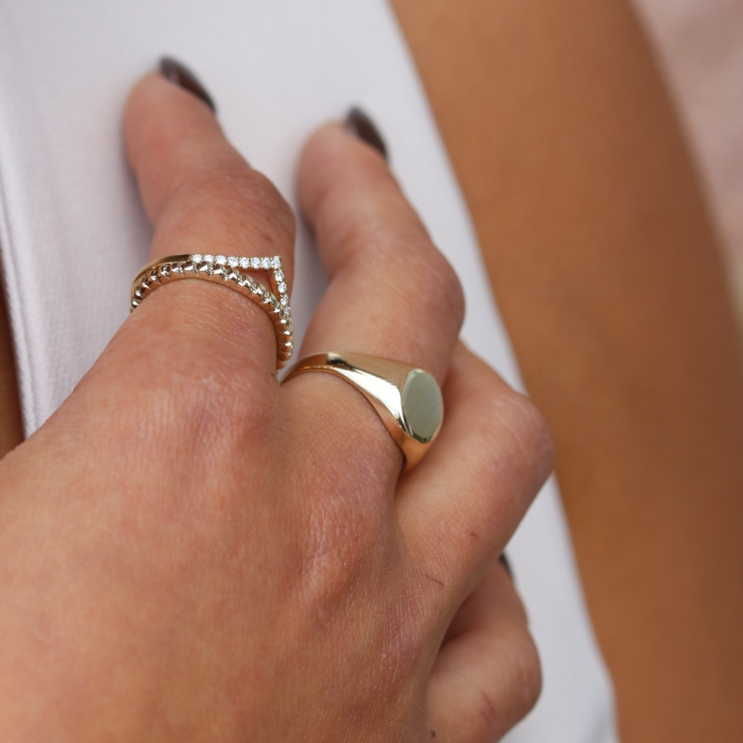 For centuries, signet rings have carried family crests and doubled as stamps for unique wax seals on letters. Our Bold Oval Signet Ring is a tribute to making your mark and honouring the influences that crafted your brilliance.