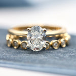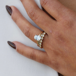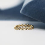 Shimmering diamonds, this band captures the dance of light and shadow where sea meets sky. Its ethically sourced white diamonds is the perfect pairing to your everyday ring stack or as a wedding band.